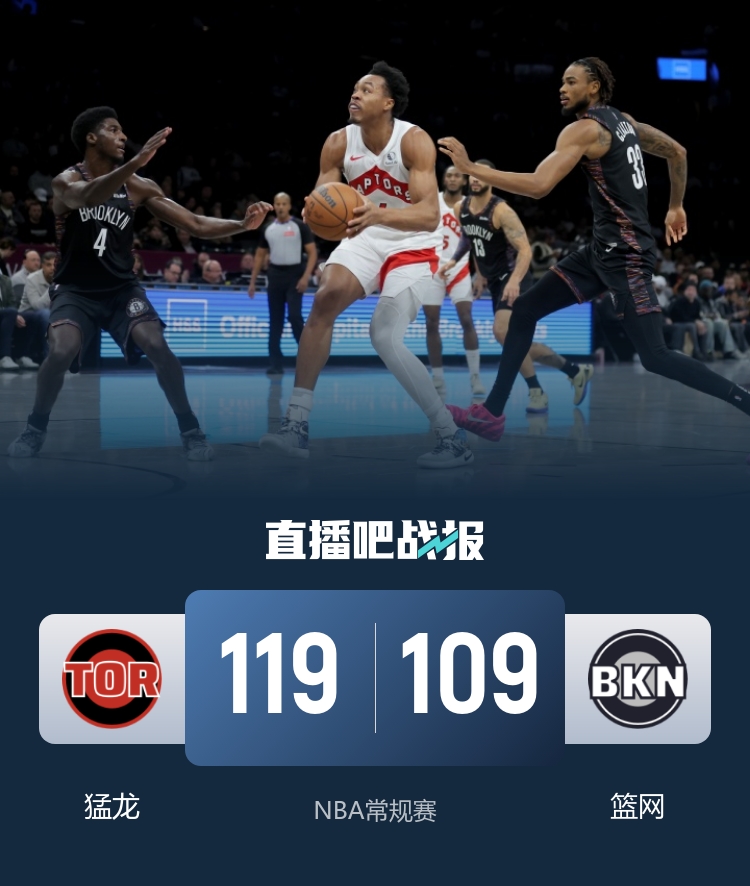 猛龙送篮网3连败 英格拉姆25+5 巴雷特21中6 克拉克斯顿21+8
