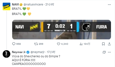 落败的NAVI再次在社媒以打趣的形式回应道:“失误太多,甚至连内马尔都朝我们开火了...”